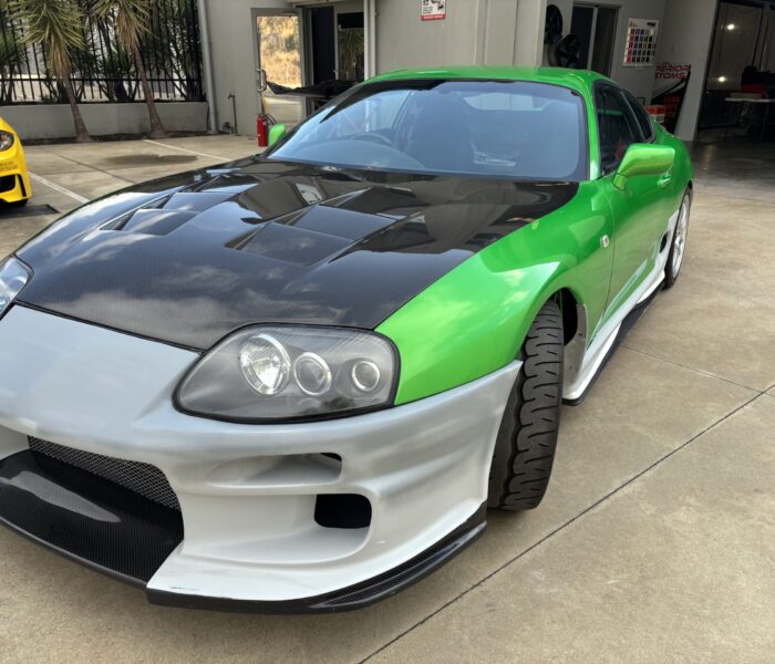 Supra Mk4 - While this was a purchased body kit and fitment was terrible. We had this car for severla months slowly fettling the body kit to fit the OEM panels. we extended bumpers, bonnets and skirts then shaped and worked until we had a "body shop ready" fit